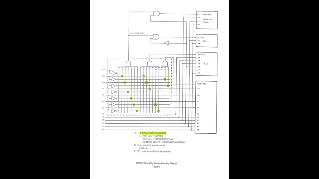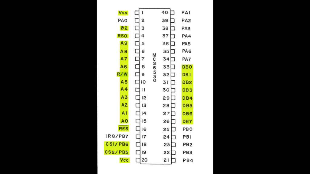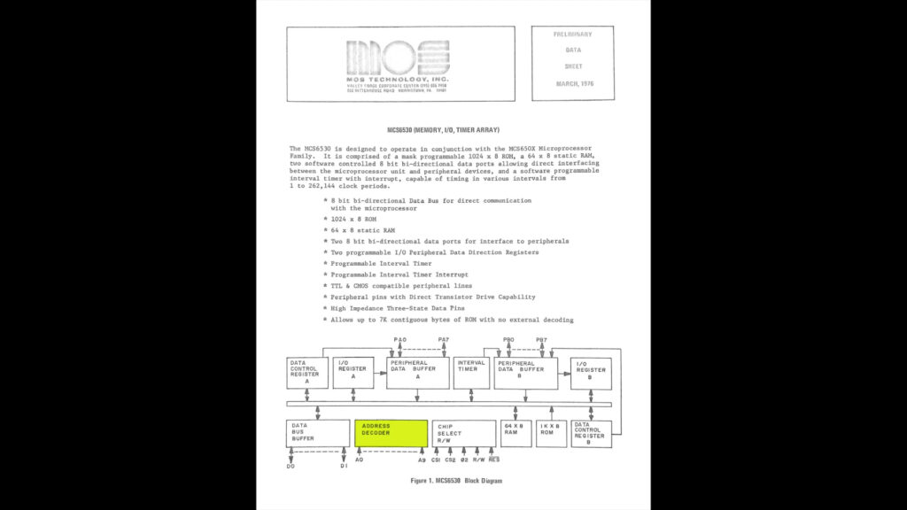 By using the breadboard extension and the Corsham Clone 5 he wiered the 6530-009 into the memory of the 6502, by interpreting the (general) 6530 datasheet as shown in the next screendumps.