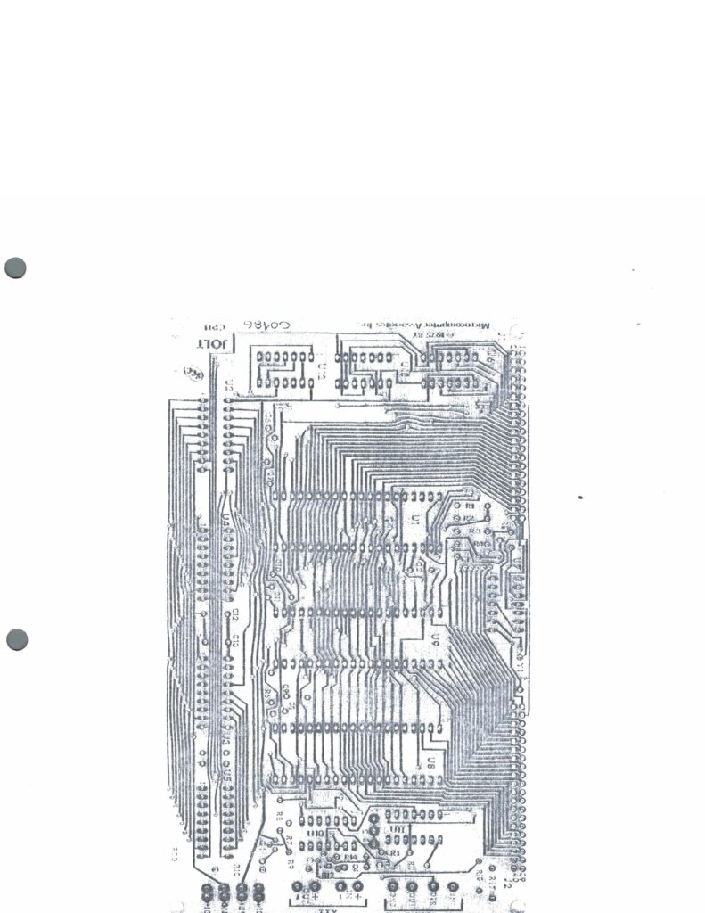 The programmable I/0 lines available from the CPU card are provided by a Peripheral Interface Adapter (PIA) and a 6530 ROM chip. The PIA has two 8-bit 1/0 ports with two interrupt-causing control lines each. Two jumpers are provided on the card which connects one or both PIA interrupt outputs to the CPU IRQ interrupt line. Refer to the CPU assembly drawing for proper identification of the jumpers. A Data Direction Register for each port determines whether each 1/0 line is an input or an output. The 6530 ROM chip provides 10 additional I/O lines that may also be specified as input or output lines under program control. There are eight 1/0 lines from one port on the 6530 and two 1/0 lines from the second port. These I/0 lines may be used in conjunction with DEMON for interfacing a high speed paper tape reader to the CPU card. In the paper tape reader application, the eight 1/0 lines from one port are used as inputs and two I/0 lines from the second port are used to accomplish the handshake control between the reader and the CPU card.