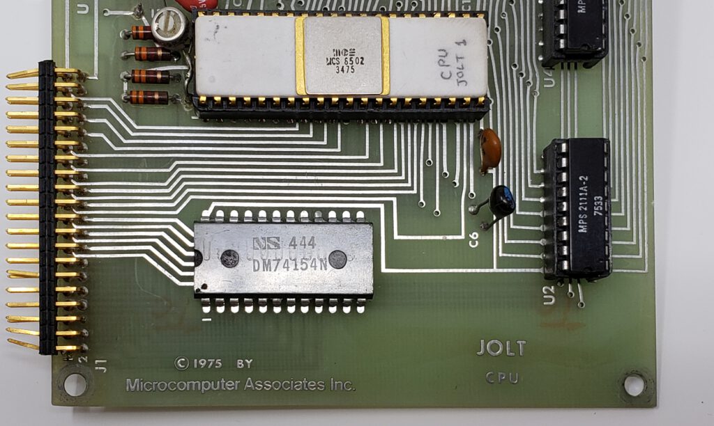 The early Jolts were equipped with a 74154 decoder for the glue logic instead of the 74LS00/04/27 of the later and more common model.