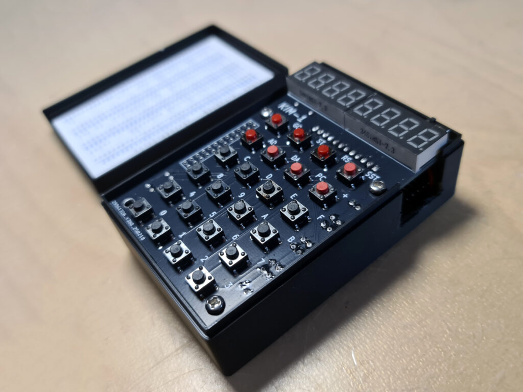 In 2025 I bought a build version from an Italian seller on ebay (retrobit4004). In a nice 3d printed case with a battery compartment , an updated PCB (Oscar supplies the Kicad design files). Alas the connector on the Arduino is soldered wrongly upside down, so I had to cut out more space at the side part.