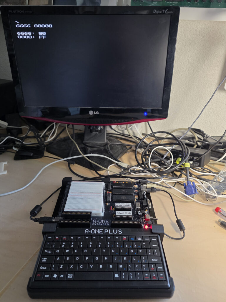 First run: WOZ monitor, Apple 1 Basic, Ken Wessen’s Krusader as present in the EEPROM.