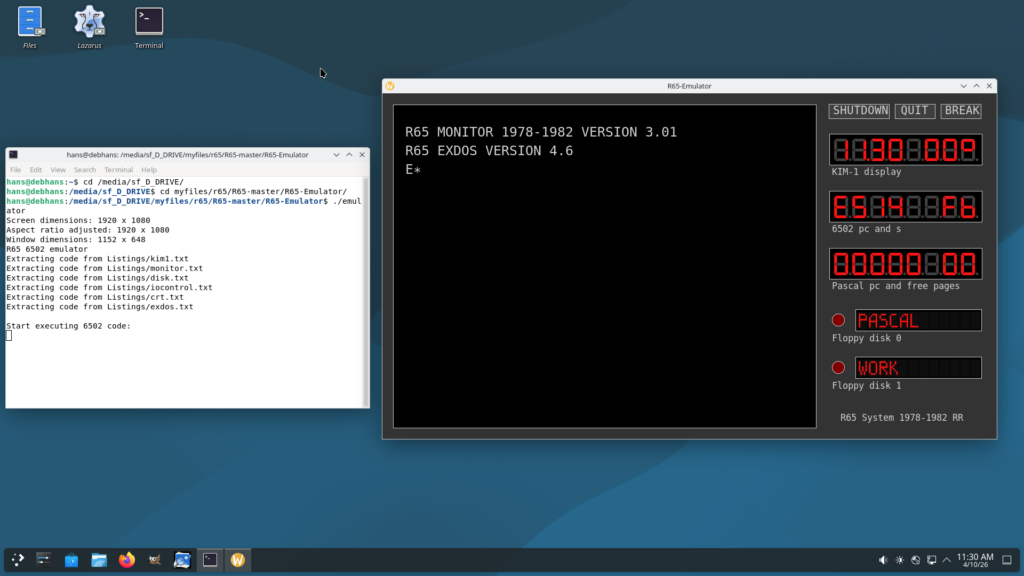 Please note that even so the emulator includes the original KIM-1 ROM, it is NOT a KIM-1 emulator. Only the KIM-1 hardware required for the operation of the R65 computer system is emulated in the emulator.