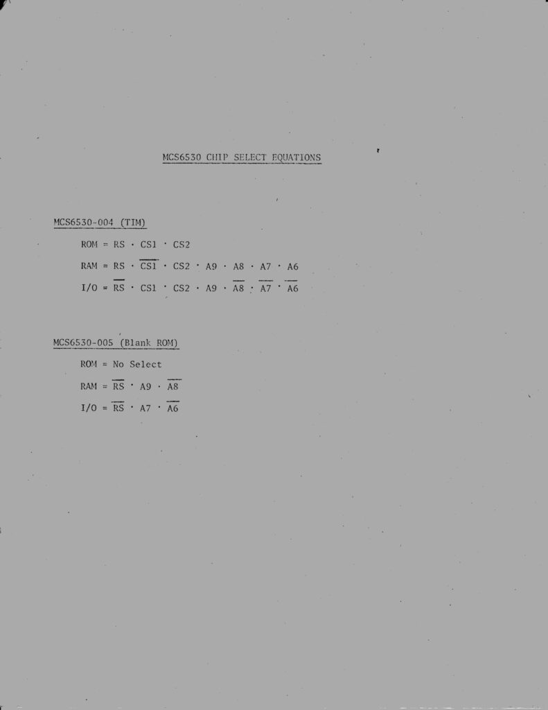 Today I received a scan of a MOS Technology sheet with the chip equations of the MCS6530-044 and MCS6530-005 (thanks Scott Barnes!).